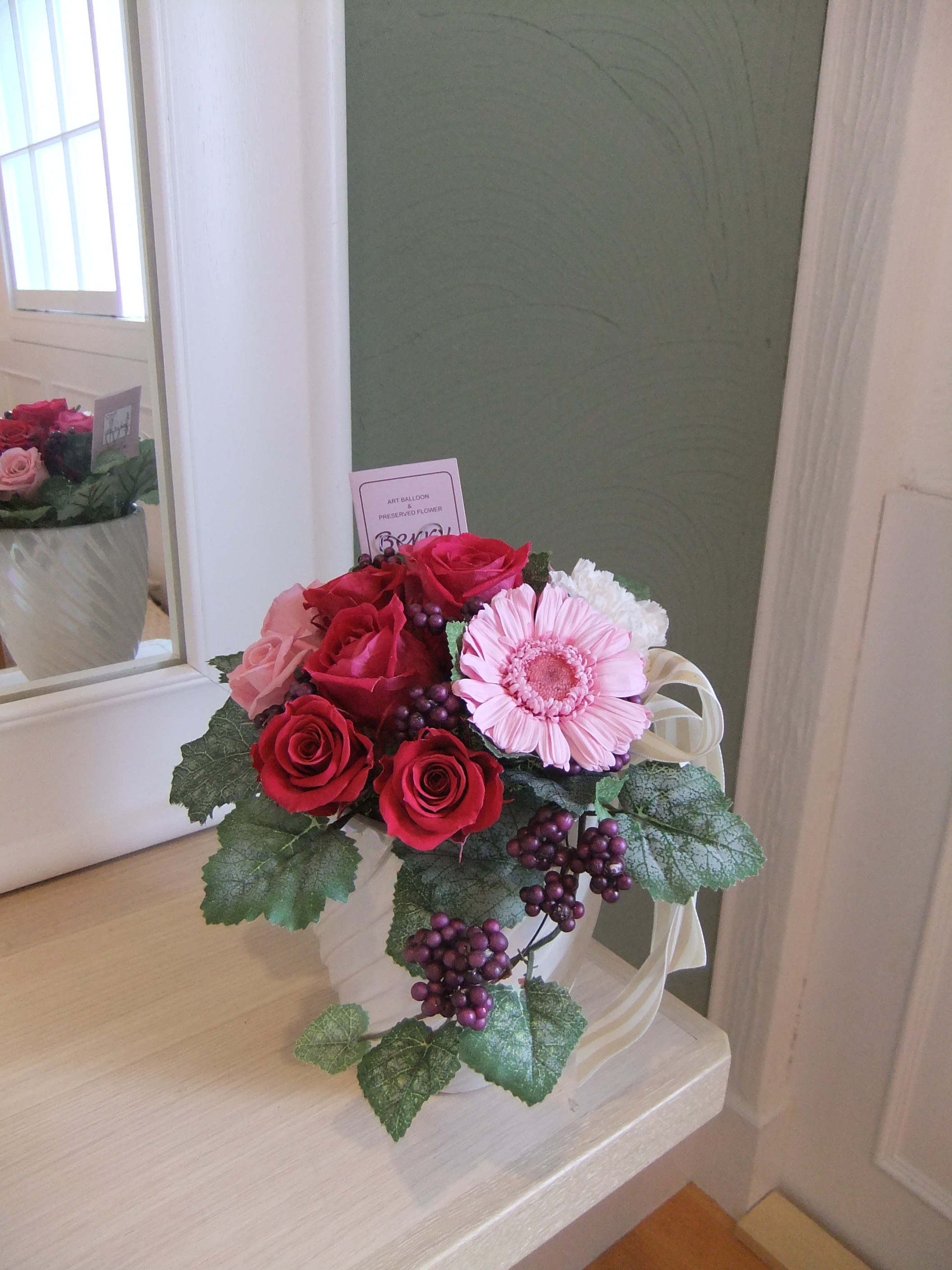 豪華なプリザーブドフラワーは新築祝い、開店祝いで喜ばれるボリュームと重厚感。